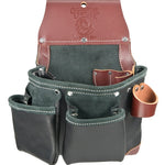 Classic black all leather tool bag built for right-side carry. Features double outer bags, an external hammer holder, and a 2003 Oxy Tool Shield for safe storage of sharp tools. Reinforced back wall at stress points provides long-term durability.